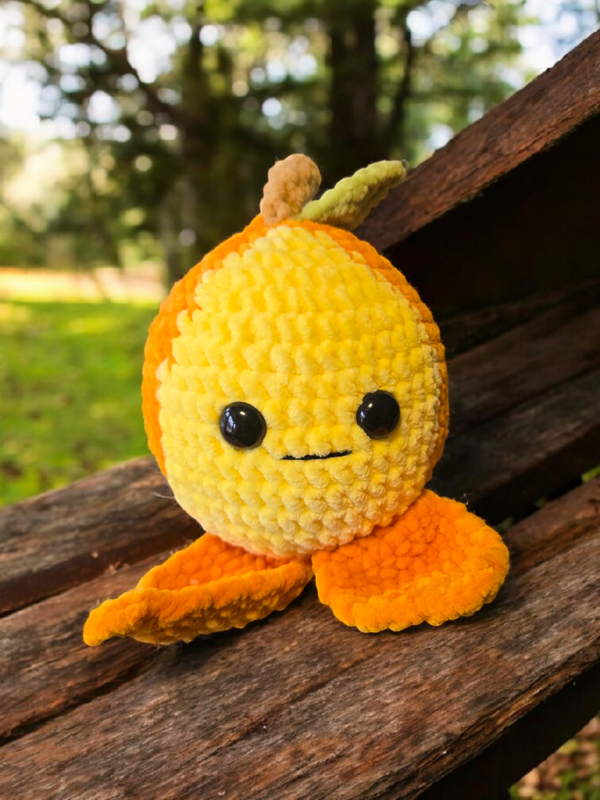 Bruno ist der frechste unter den Fruchtfreunden! Mit seiner lustig halb geschälten Form, dem warmen Gelbton und seinem charmanten Grinsen ist er ein echter Stimmungsheber – verspielt, weich und einfach zum Anbeißen süß.